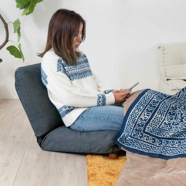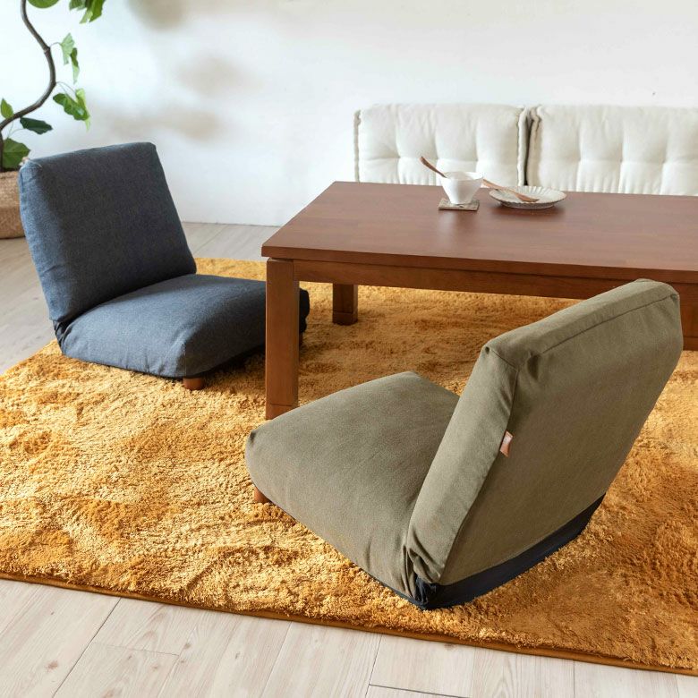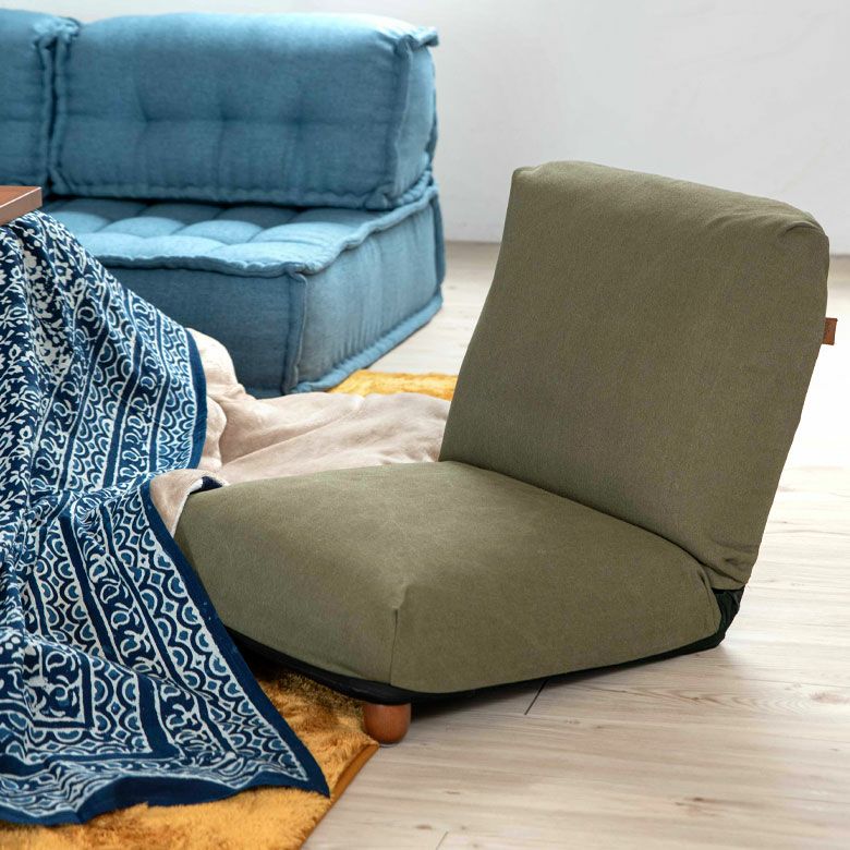 ソファ 一人掛け ふかふか ファブリック フラット デニム 座椅子 リクライニング フロアソファ ネイビー カーキ [91462]【 1人掛け コンパクト いす カジュアル 折りたたみ 無地 省スペース リクライナー フロアチェア リクライニングチェア こたつ こたつ用 コタツ 一人暮らし 小さめ 脚付き 脚付 あぐら おしゃれ】