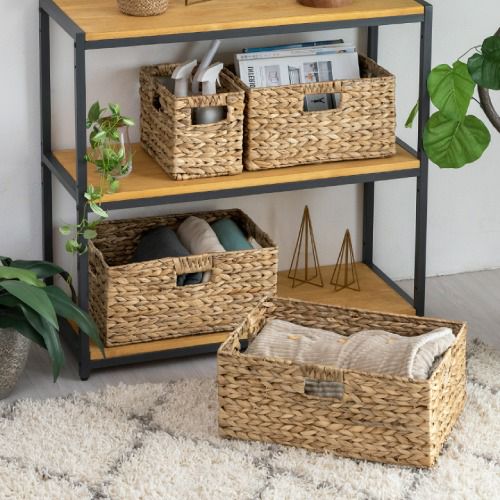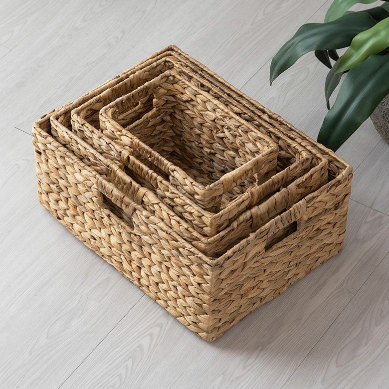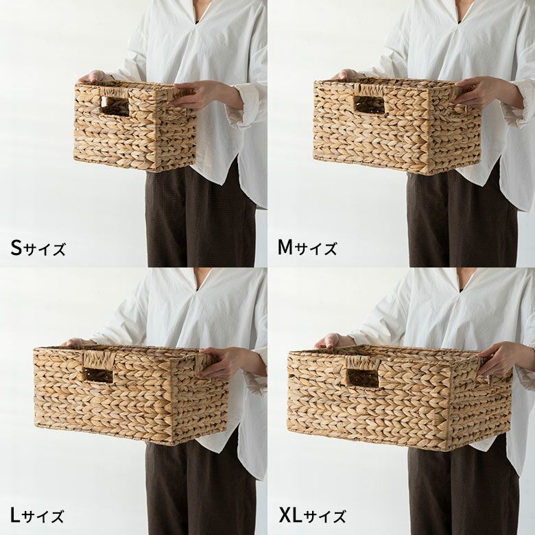 インナーケース 収納BOX かごバスケット 荷物入れ 荷物置き ウォーターヒヤシンス製 持ち手つき バスケット S/M/L/XL 4個セット おしゃれ 収納バスケット 収納ボックス 引き出し 収納ケース アジアン雑貨 収納box a4 かわいい 小物 四角 cd dvd ランドリー 取っ手付き 収納カゴ 雑誌 [set-5070]