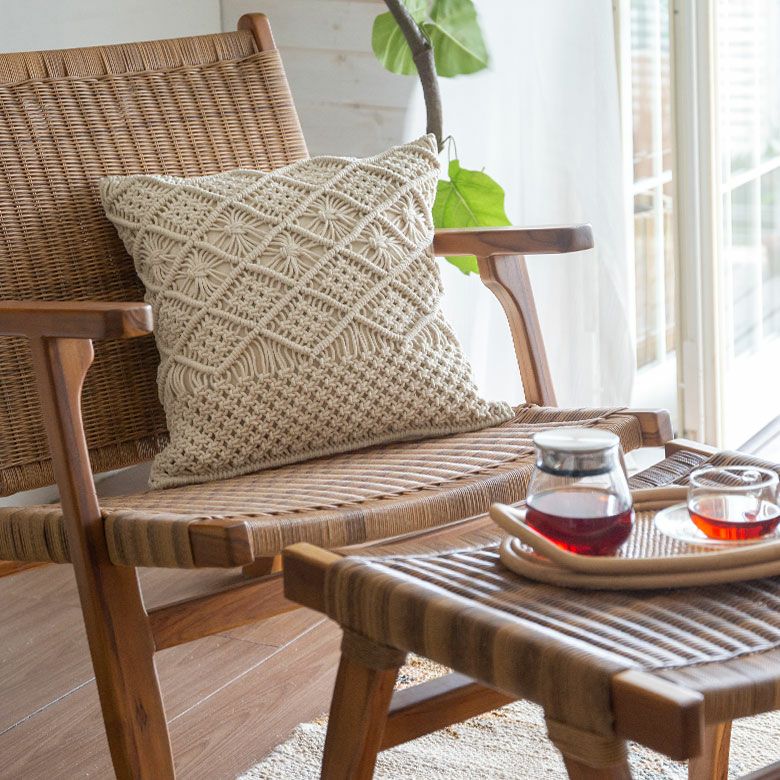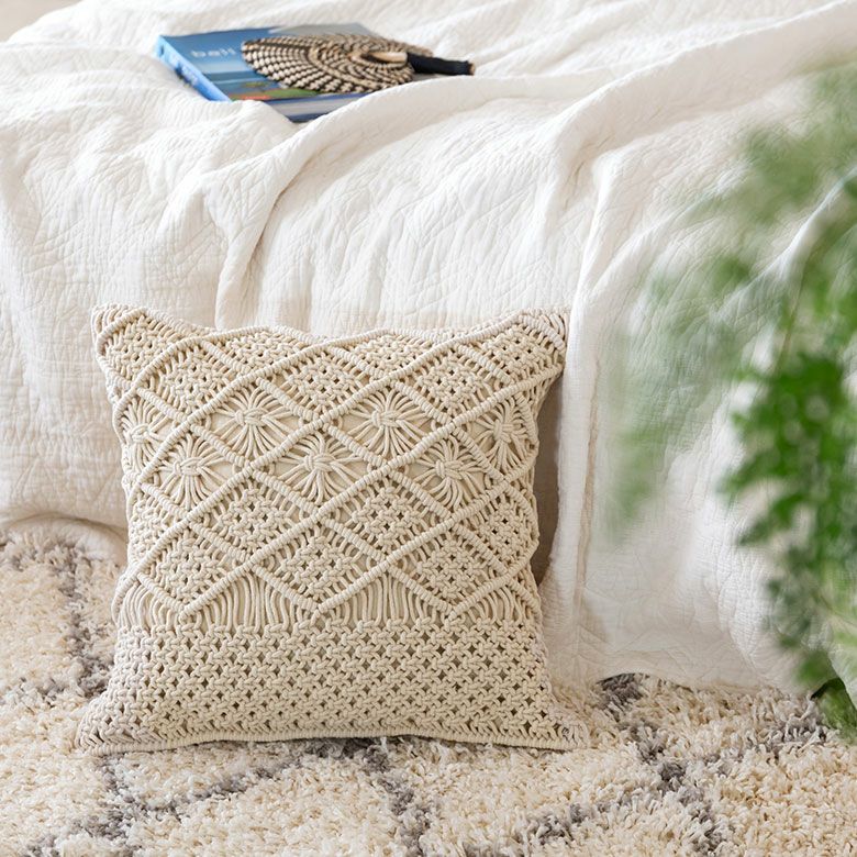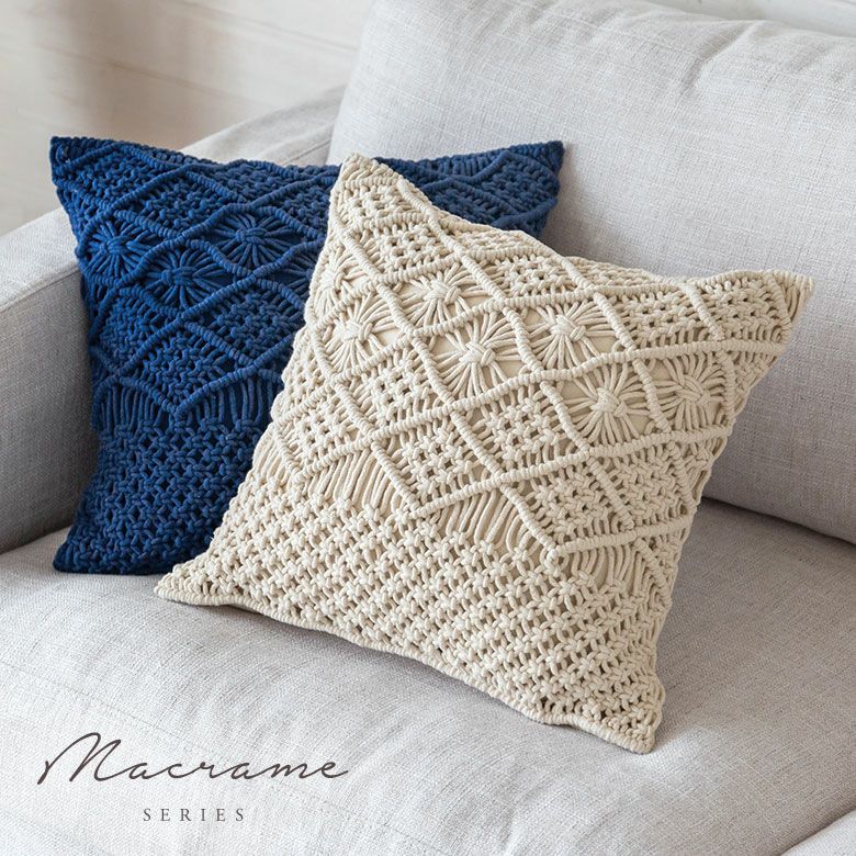 ハンドメイド クロシェ モロッカン 編物 リビング クッションカバー マクラメ 編み コットン 正方形 45×45cm 約 W 44cm D 44cm H 1cm [34492]【 綿 白 アイボリー ブルー 青 紺 ネイビー モロッコ ボヘミアン かぎ針編み かぎ編み 北欧 ナチュラル おしゃれ リゾート 韓国 インド インテリア おうち時間 アジアン 雑貨 】