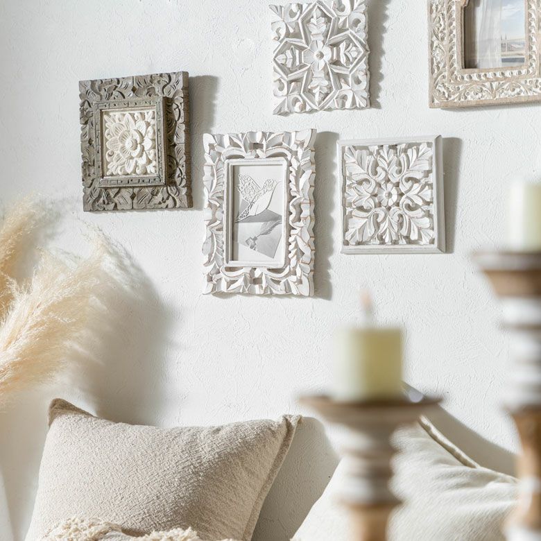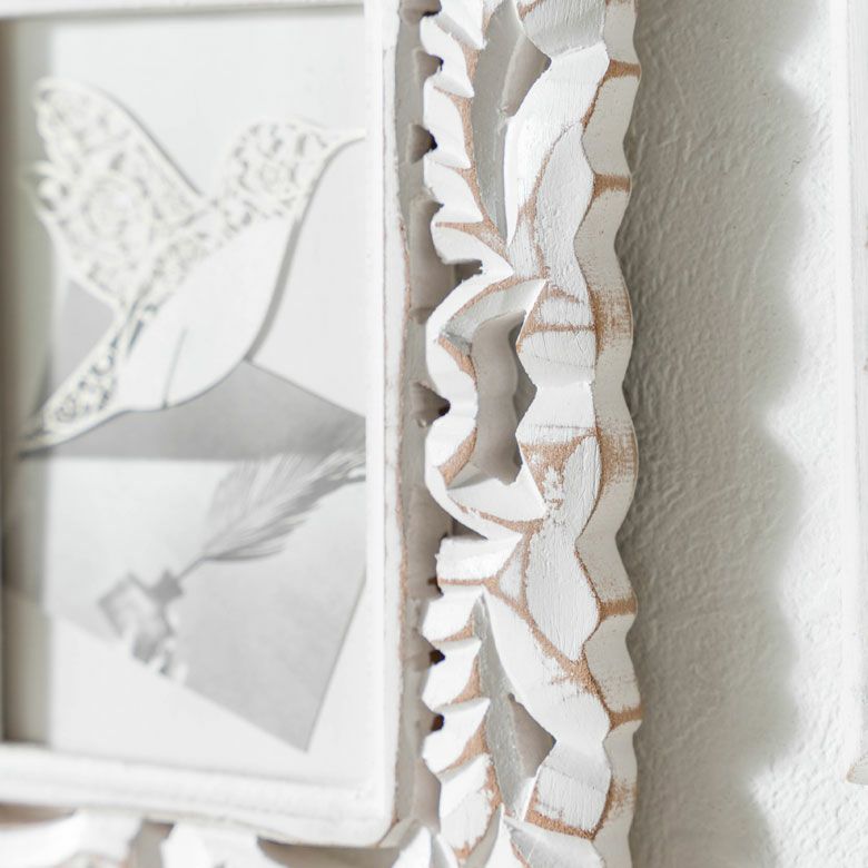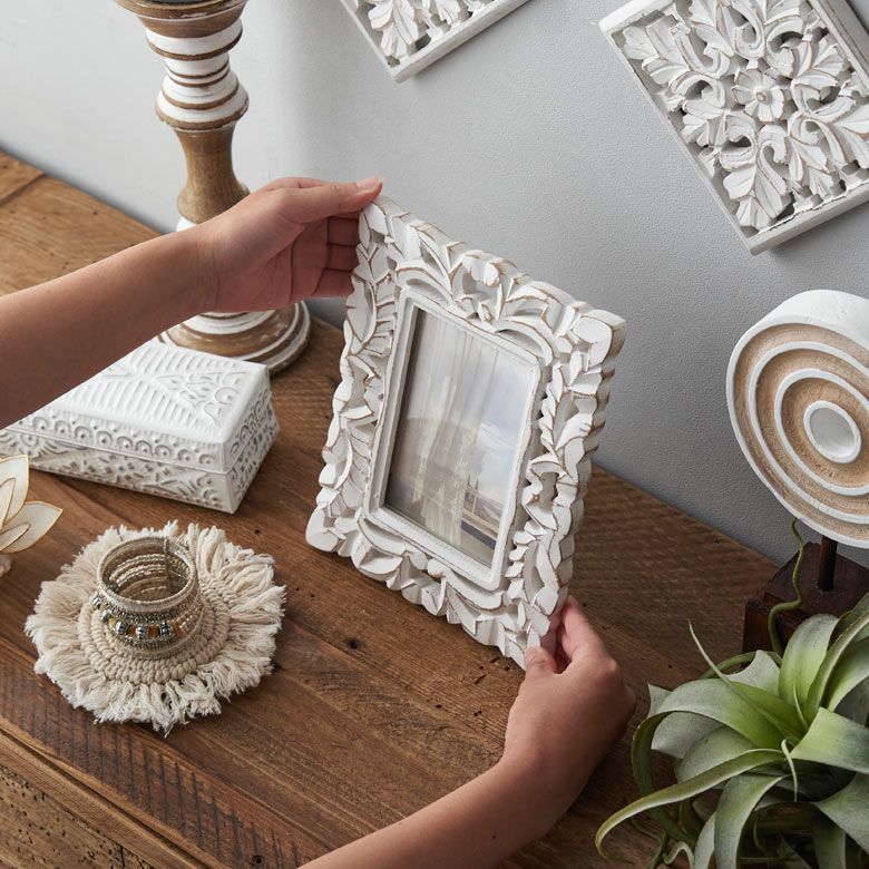 カードフレーム かわいい 可愛い 卓上 立て掛け 推し リゾート フォトフレーム 写真立て 木彫り 木製 マンゴーウッド カービング 縦置き 横置き L判 ポストカードサイズ 約W19 × D2 ×H24cm フォトスタンド 壁掛け 写真たて 白枠 ピクチャーフレーム ホワイトウォッシュ おしゃれ 北欧 韓国インテリア モロッカン アジアン雑貨 [34563]