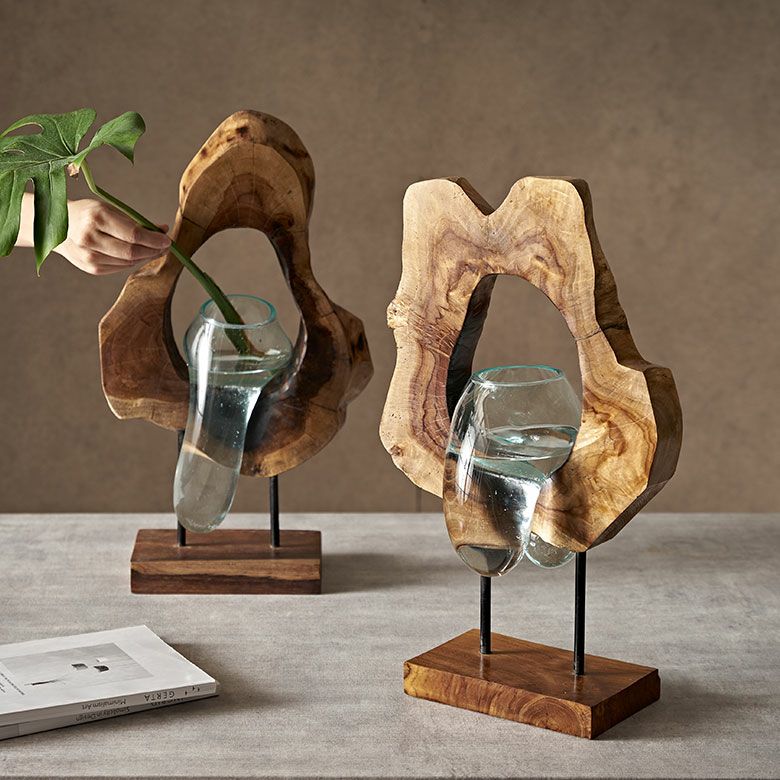 観葉植物 花 フラワー エアープランツ 店舗 レストラン カフェ 花 花生け かびん 造花 ドライフラワー フェイク グリーン アレンジメント ベース リビング 玄関 ギフト プレゼント フラワーベース 木製 ウッド ガラス 花瓶 花びん 水入れ可 約 H 15~25cm 花器 一輪挿し 花入れ 生花 花入 ディスプレイ 置き物 オブジェ テラリウム 容器 グリーン 園芸 観賞用 おしゃれ 北欧 リゾート 雑貨 インテリア アジアン [14056]