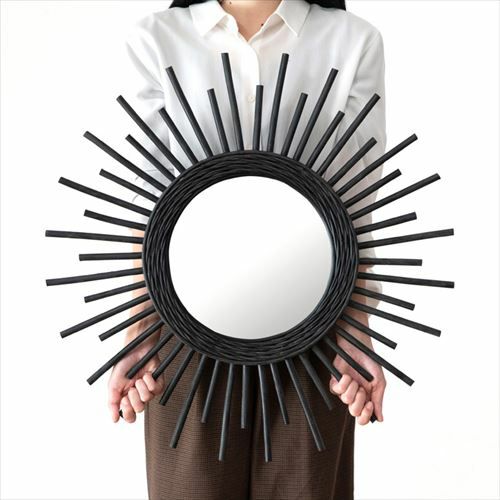 壁掛鏡 鏡 壁掛け式 吊り下げ ミラー デザインミラー 化粧鏡 ミラー 鏡 丸型 壁掛け ラタン アジアン 直径60cm ミラー部分径23.5cm[13704]【 壁掛けミラー サンミラー 太陽 放射状 ウォールミラー 壁掛け鏡 ラウンドミラー 円形 ウォールデコレーション インテリア アジアン雑貨 バリ島 リゾート おしゃれ 】