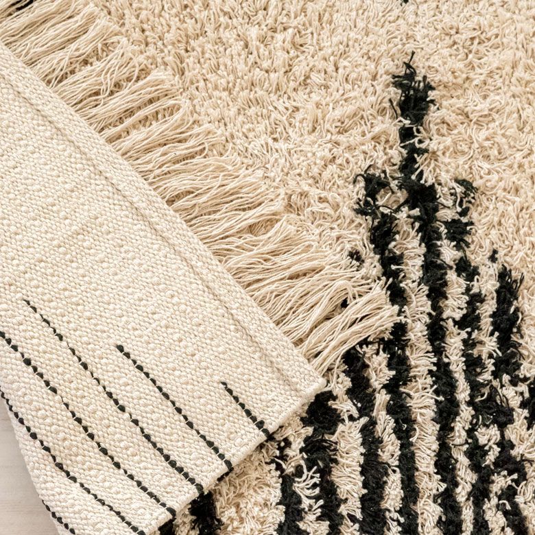 シャギーラグ ダイヤ ライン コーディネート コットン 100×140 ラグ ラグマット ダイヤ柄 ダイヤモンド シルエッ ト デザイン 100×140cm 白黒 BOHO [34415]【 カーペット 絨毯 じゅうたん おしゃれ お洒落 エスニック ボーホー モノトーン 長方形 オールシーズン 春 夏 秋 冬 厚手 敷物 マット アジアン アジアン雑貨 】
