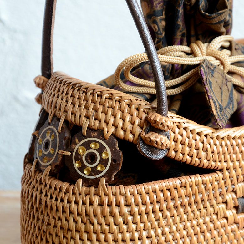 バリ島の天然素材で編まれた人気のかごバッグ。 アタで編まれた アジアン かごバッグ[内袋付き](13270)【おしゃれ トートバッグ レディース かわいい カゴバッグ 夏 ショルダー バスケット アジアン雑貨 エスニック 籠バッグ カゴ かごバック アタバック アタバッグ バリ雑貨 バリ島】