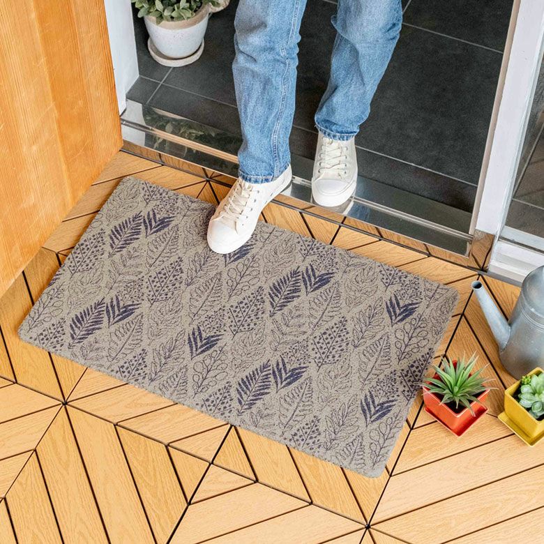 ドアマット コンパクト オリエンタル ナチュラル カラフル テラスマット 75×45cm PVC モザイク柄 リーフ柄 [90253]【 玄関マット 水洗い可 カット可 玄関マット 屋外 屋内 室内 泥落とし おしゃれ マット モザイク リーフ ベランダ 玄関 勝手口 エントランス ふかふか 滑り止め付き】