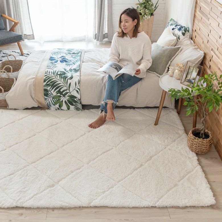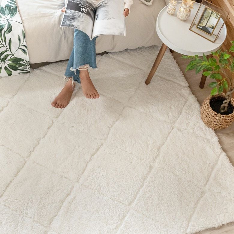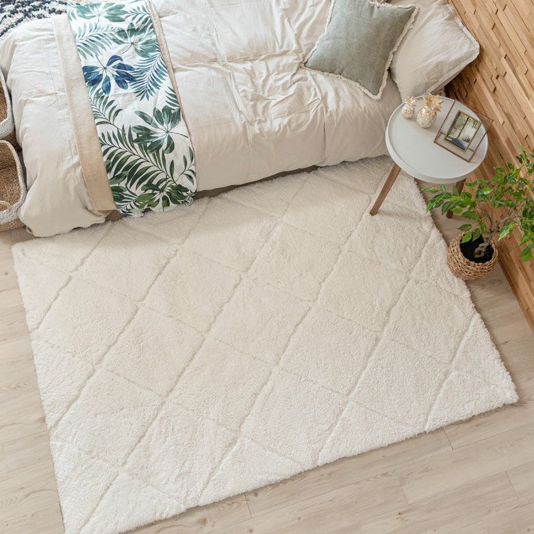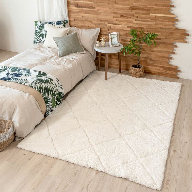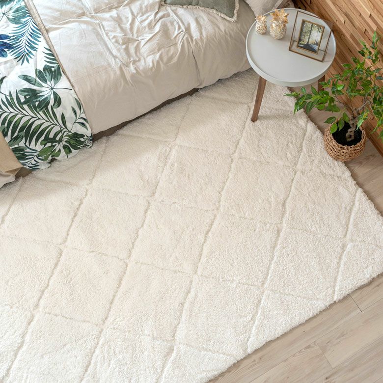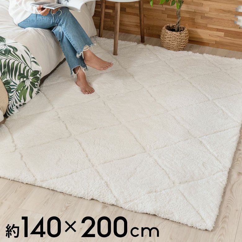 3Dマット 3Dデザイン じゅうたん 絨毯 敷物 オールシーズン ラグ ラグマット 約 140 × 200 cm ノンスリップ 加工 凹凸 3Dデザインマット 立体 [66929]【 カーペット マット 強力滑り止め付き おしゃれ 白 ホワイト 長方形 シャギー 床暖房対応 ホットカーペット対応 ふわふわ 北欧 モロッカン エスニック 】