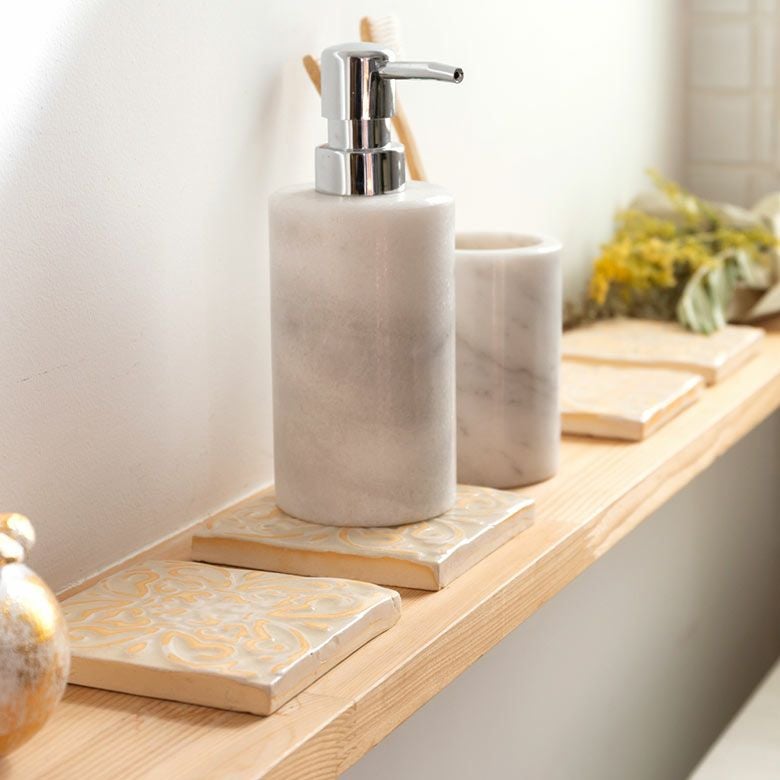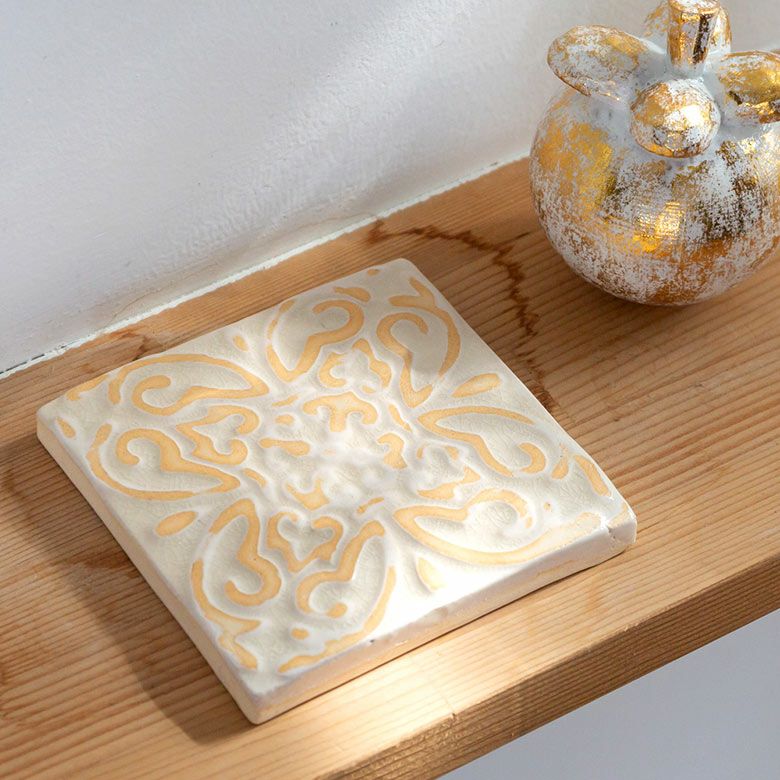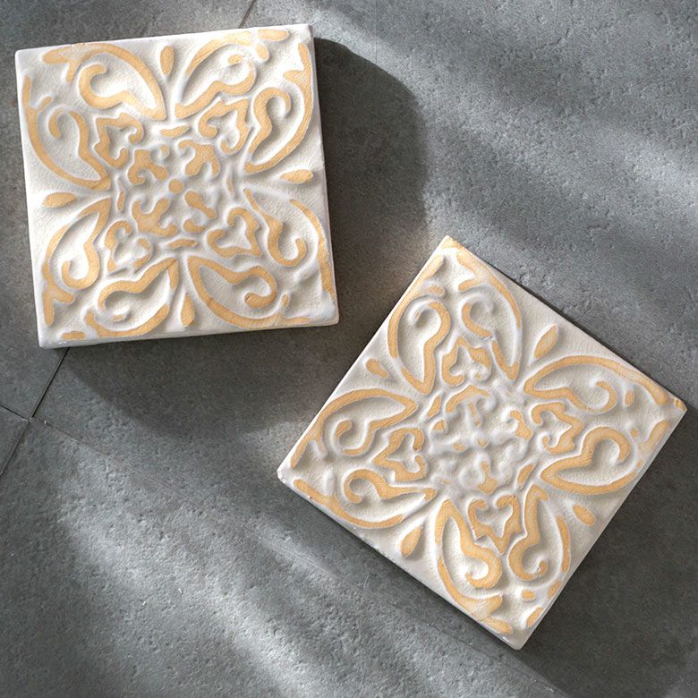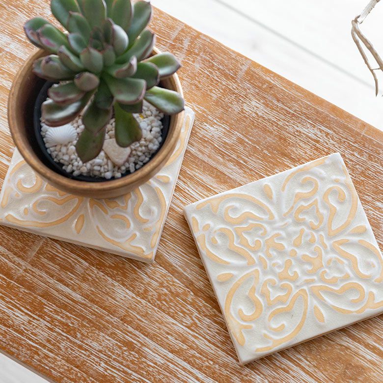 square エスニック スタイル リビング ダイニング 装飾 焼き物 タイル 四角 スクエア ホワイト セラミック 陶器 コースター 直径 10cm [51176]【 アラビア風 アラビア キッチン コーデ 台所 テーブル コーディネート リゾート スタイル アンティーク デザイン インテリア雑貨 陶磁器 おしゃれ 鍋敷き 花瓶敷き アジア アジアン雑貨 】