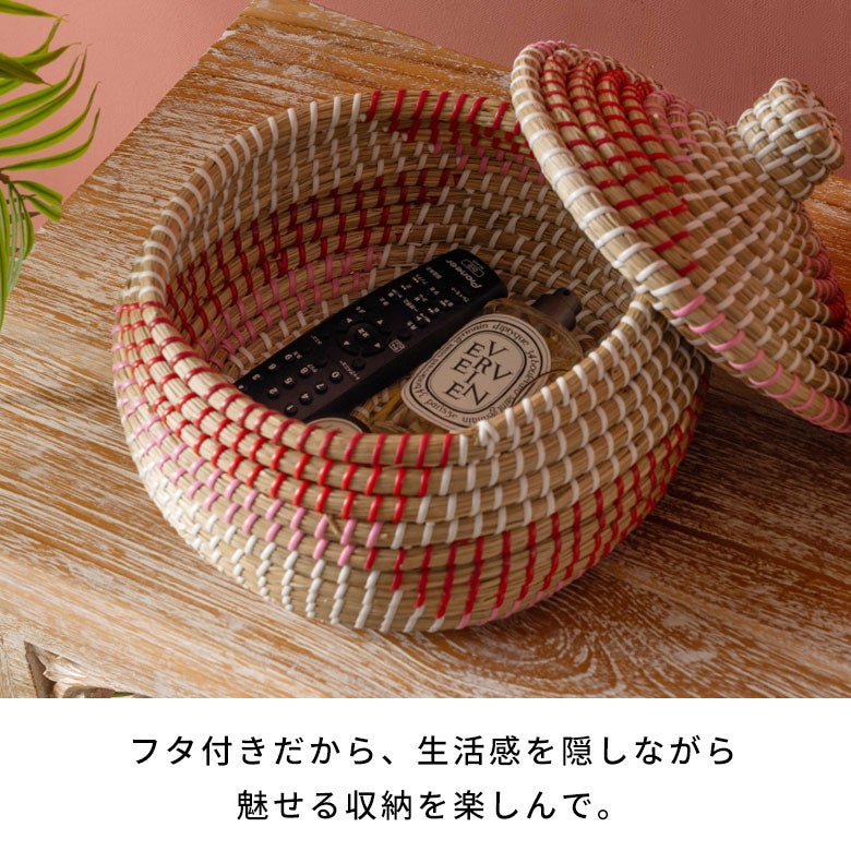 カゴ かご ゴミ箱 ごみ箱 フタ ふた 蓋 つき 付き 高さ 18cm 店舗 カフェ レストラン おもちゃ入れ アフリカン アフリカ ベルベルバスケット セネガルバスケット アフリカンバスケット バスケット ふた付き かごバスケット ポット シーグラス 約 W 26cm D 26cm H 18cm ナチュラル ピンク 収納 セネガルバスケット 蓋付き シーグラスバスケット 収納バスケット ダストボックス 荷物入れ 荷物かご おしゃれ 北欧 リゾート 雑貨 インテリア アジアン [51351]