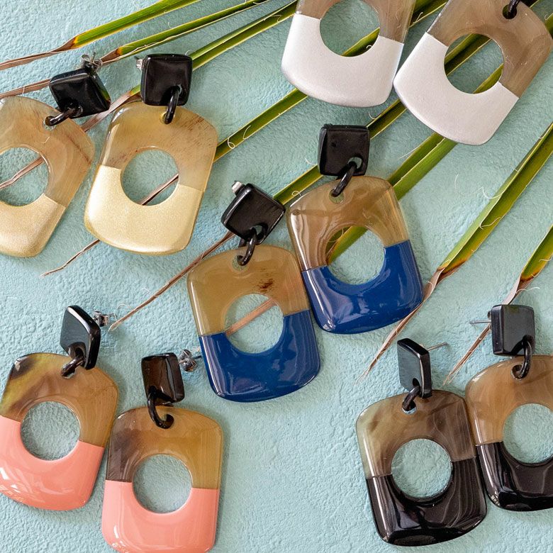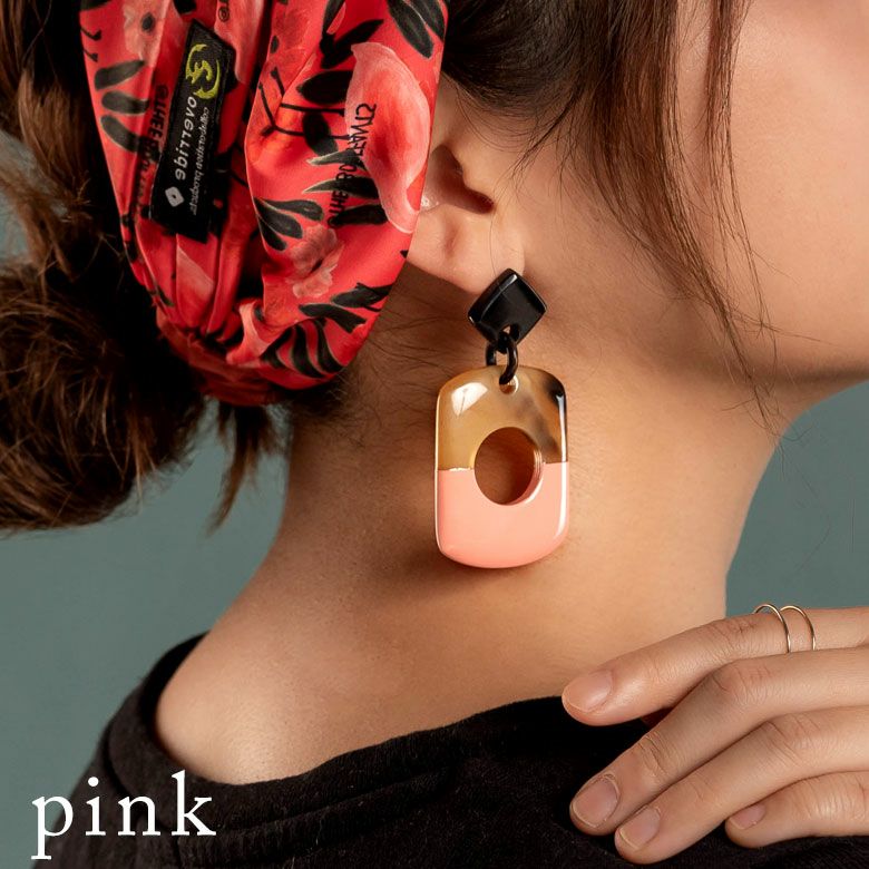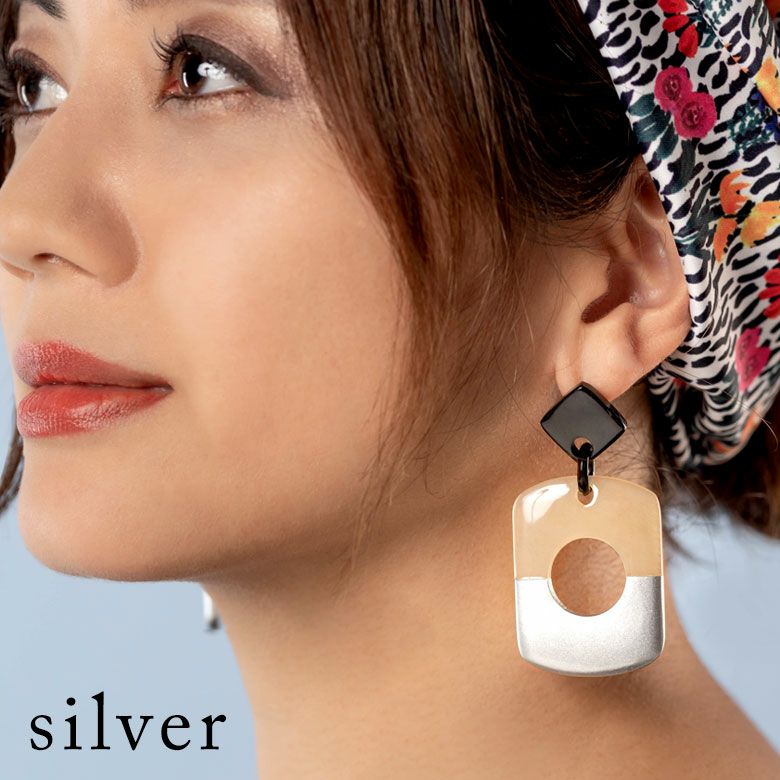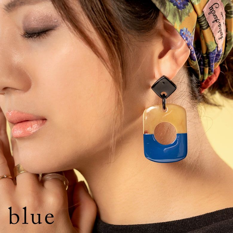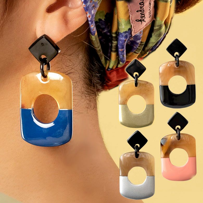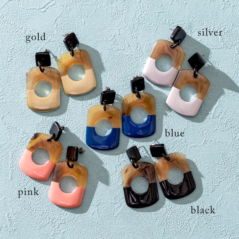 エスニック かわいい オフィス レディース 【メール便対応】キャトルホーン ピアス アクセサリー バイカラー ゴールド シルバー ブラック ブルー ピンク ナチュラル W 3.2cm D 2cm H 6.8cm [51254]【 アジアンファッション ギフト プレゼント おしゃれ シック カジュアル エレガント リゾート アジアン 雑貨 】
