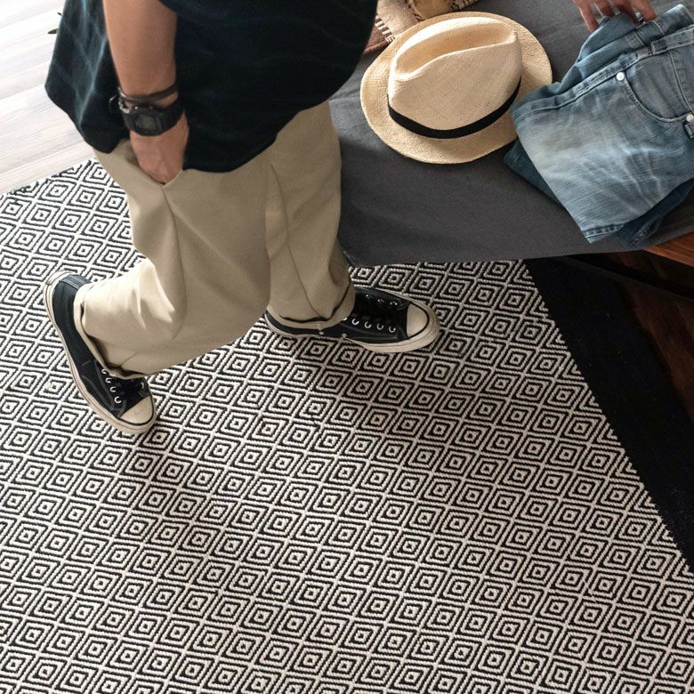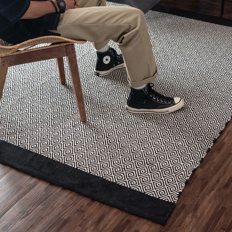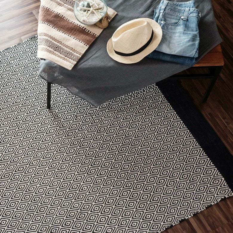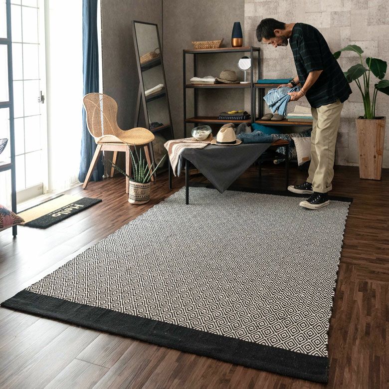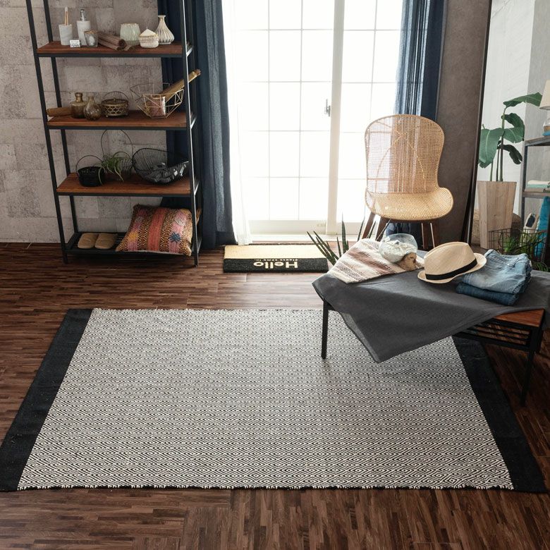 モノトーン ボーホー ジオメトリック 幾何学模様 BOHO ラグ ラグマット 約140×200cm インド製 コットン ブラック ホワイト [34411]【 おしゃれ 長方形 ハンドメイド 手織り 絨毯 じゅうたん カーペット リビング ダイニング ベッドルーム 寝室 敷物 マット アジアン エスニック オリエンタル 】