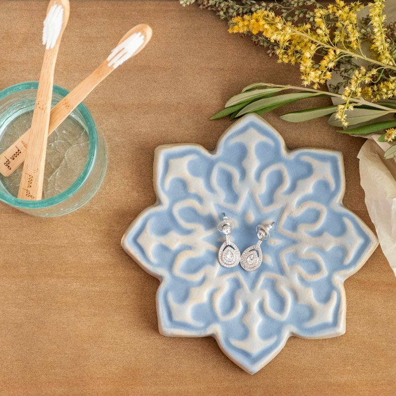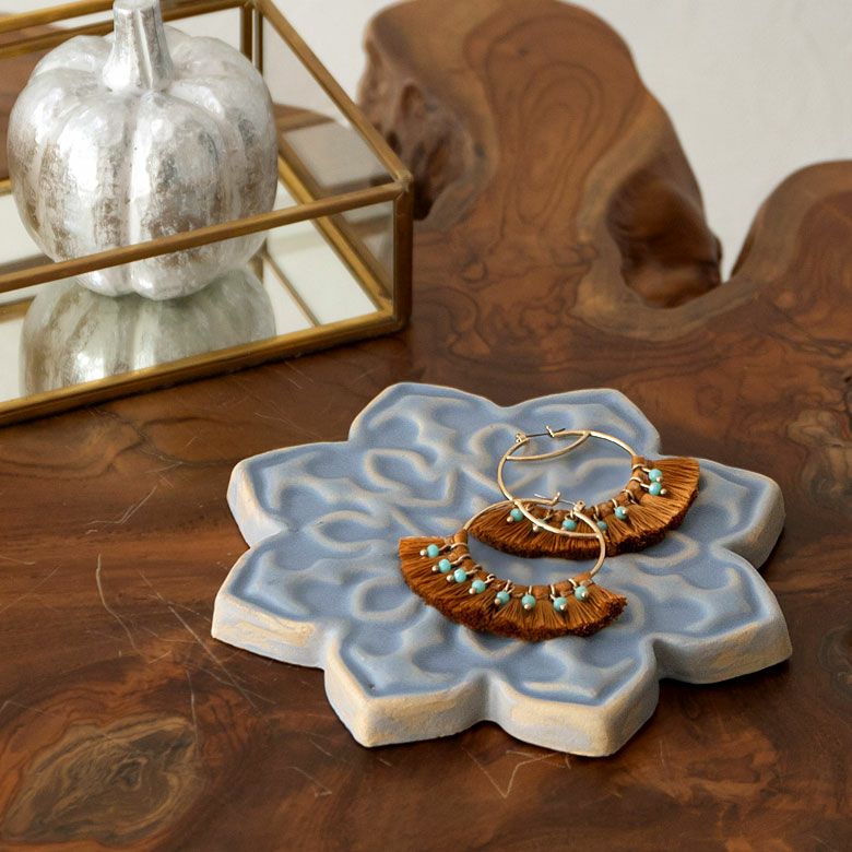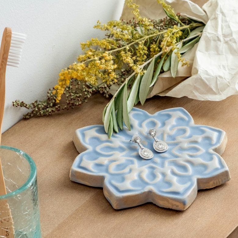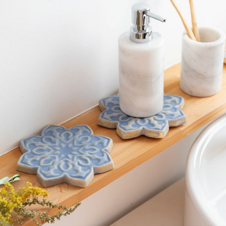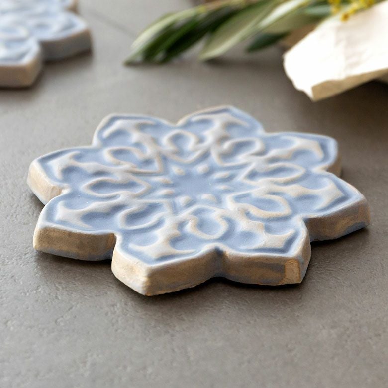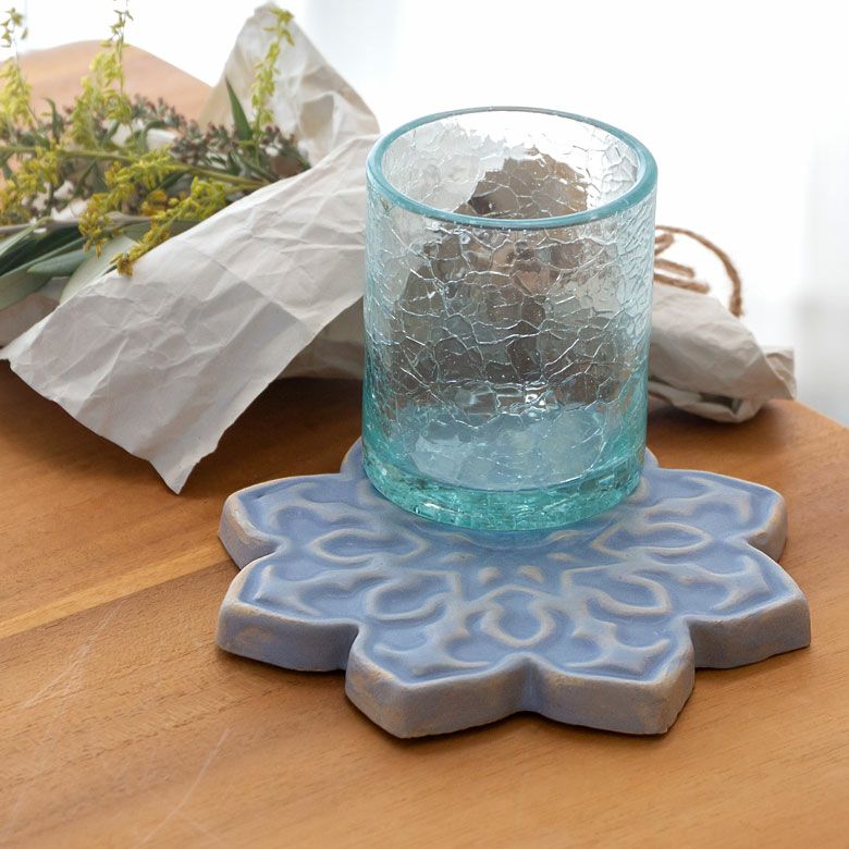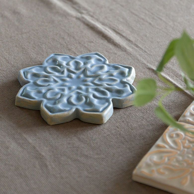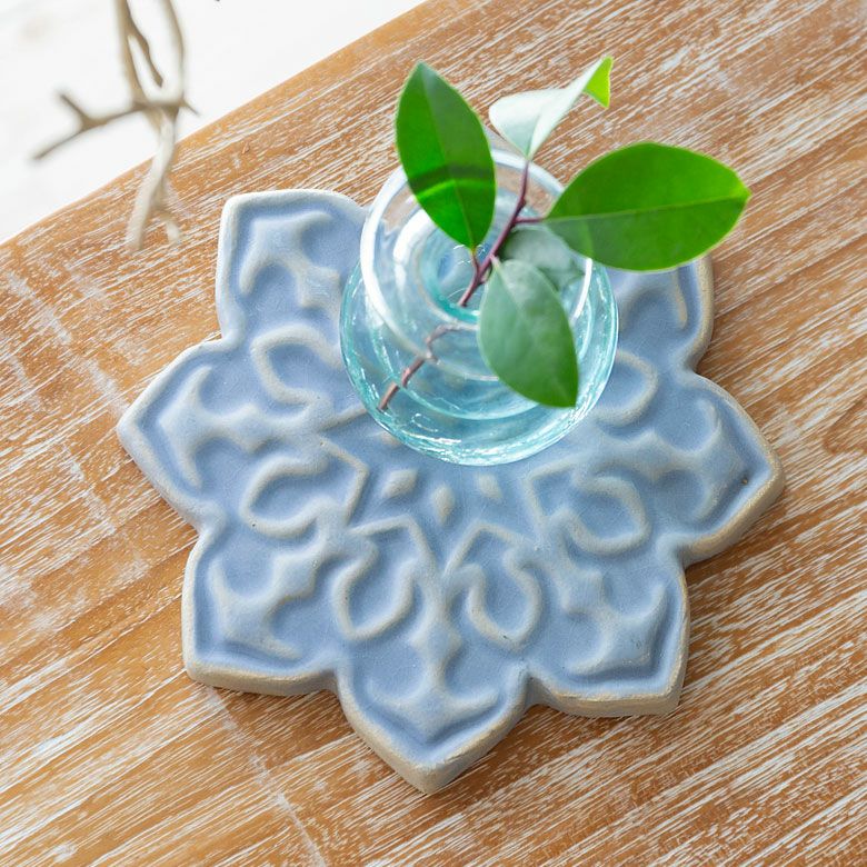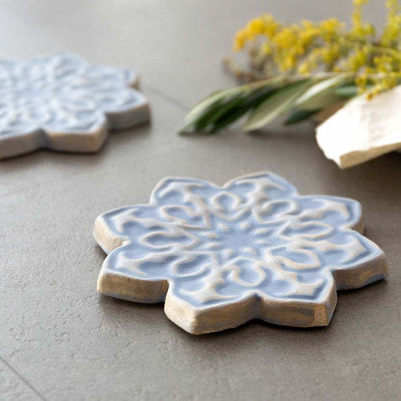 flower エスニック スタイル リビング ダイニング 装飾 焼き物 タイル 花 フラワー スカイブルー セラミック 陶器 コースター 直径 15cm [51174]【 アラビア風 アラビア キッチン コーデ 台所 テーブル コーディネート リゾート スタイル アンティーク デザイン インテリア雑貨 陶磁器 おしゃれ 鍋敷き 花瓶敷き アジア アジアン雑貨 】