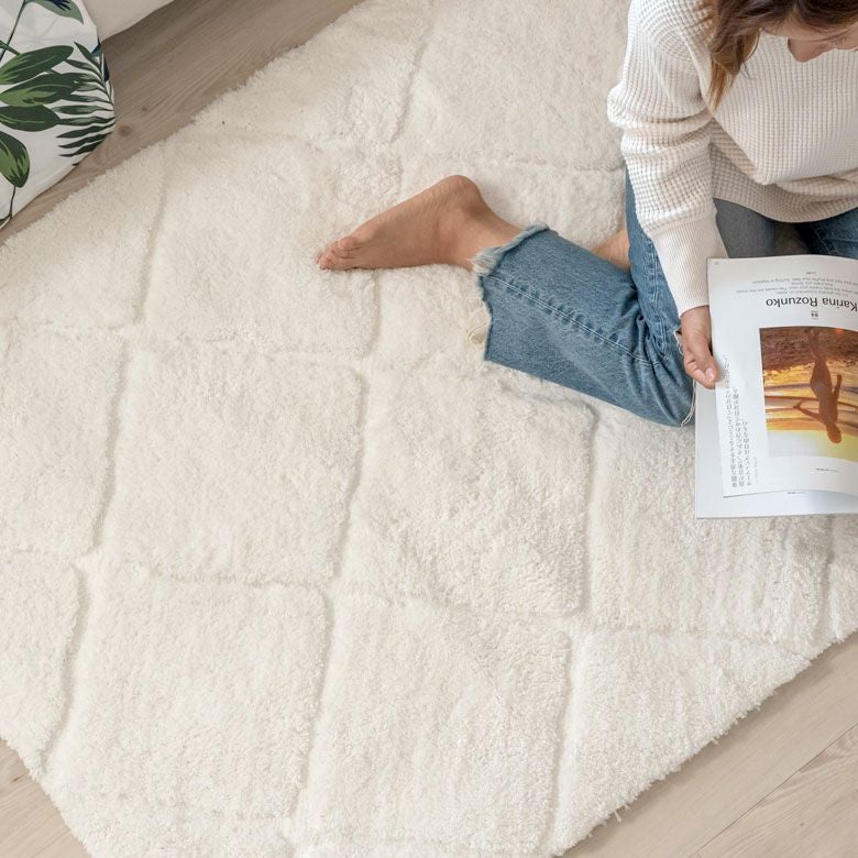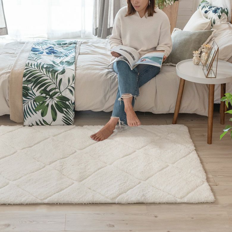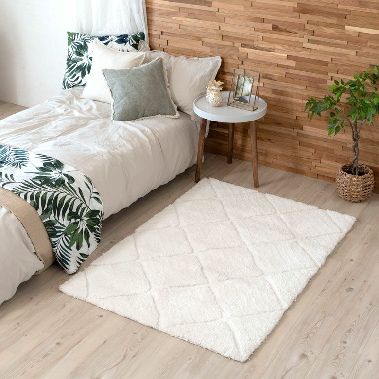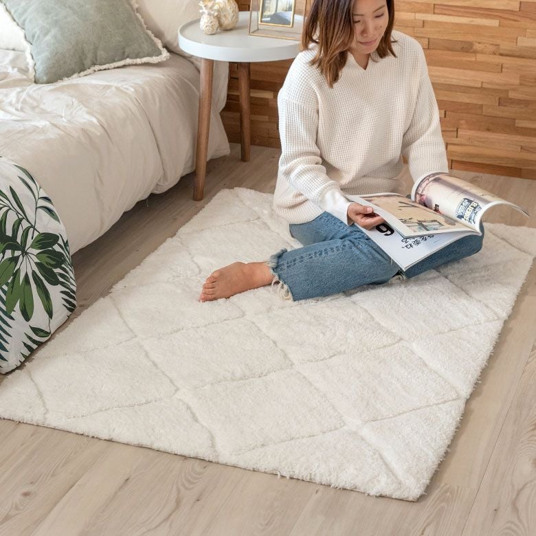 3Dマット 3Dデザイン じゅうたん 絨毯 敷物 オールシーズン ラグ ラグマット 約 100 × 140 cm ノンスリップ 加工 凹凸 3Dデザインマット 立体 [66928]【 カーペット マット 強力滑り止め付き おしゃれ 白 ホワイト 長方形 シャギー 床暖房対応 ホットカーペット対応 ふわふわ 北欧 モロッカン エスニック 】