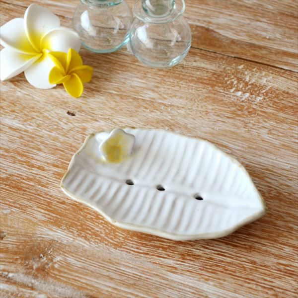 ソープディッシュや小物置きに使えるアジアントレイ プルメリアの花咲く陶器の アジアン ソープディッシュ[ホワイト][10168]【石鹸トレイ 石鹸トレー 石鹸皿 石鹸置き 石鹸ホルダー 石鹸台 せっけん皿 せっけん置き せっけん台 収納トレイ 小物入れトレー バリ 雑貨 アジア雑貨 アジアン雑貨】【あす楽対応 ハワイアン】