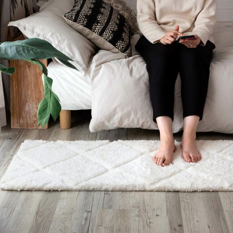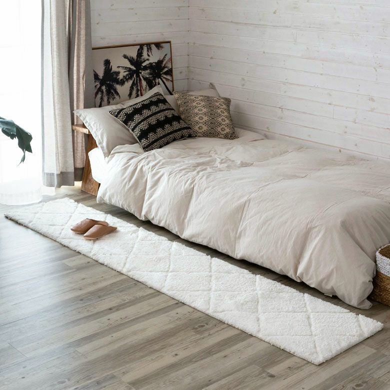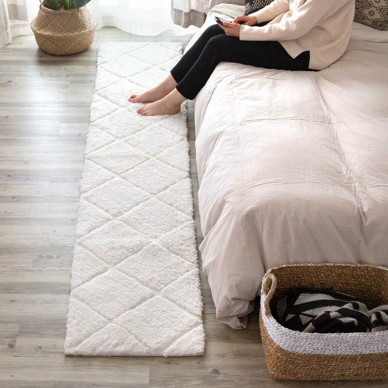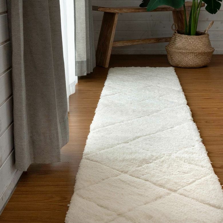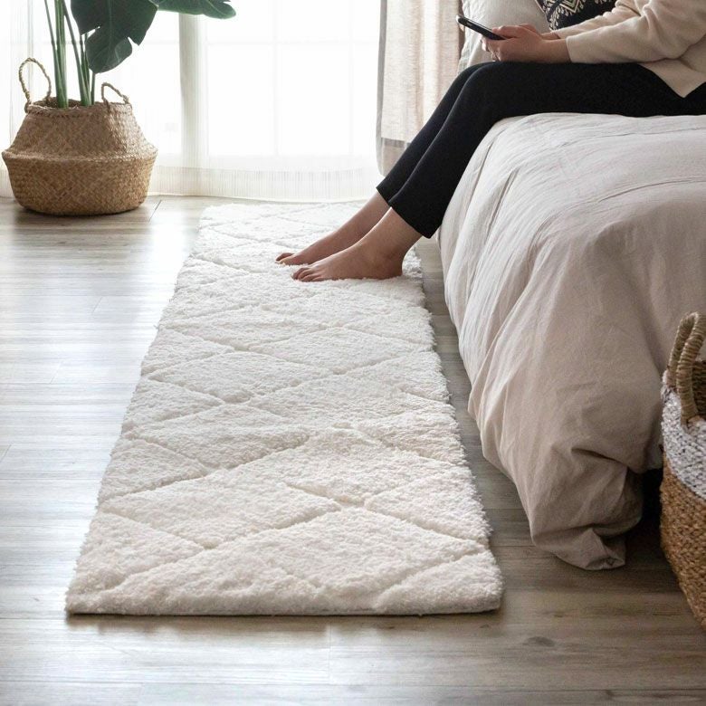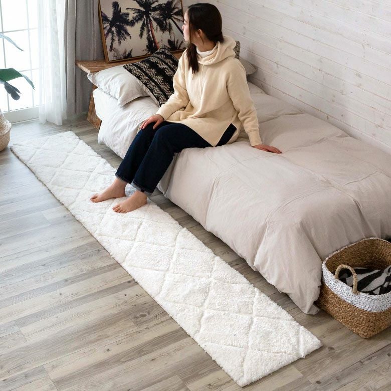 3Dマット 3Dデザイン じゅうたん 絨毯 敷物 オールシーズン ラグマット 約 45 × 240 cm ノンスリップ 加工 凹凸 3Dデザインマット 立体 [66927]【 ラグ カーペット マット 強力滑り止め付き おしゃれ 白 ホワイト 長方形 シャギー 床暖房対応 ホットカーペット対応 ふわふわ 北欧 モロッカン エスニック 】