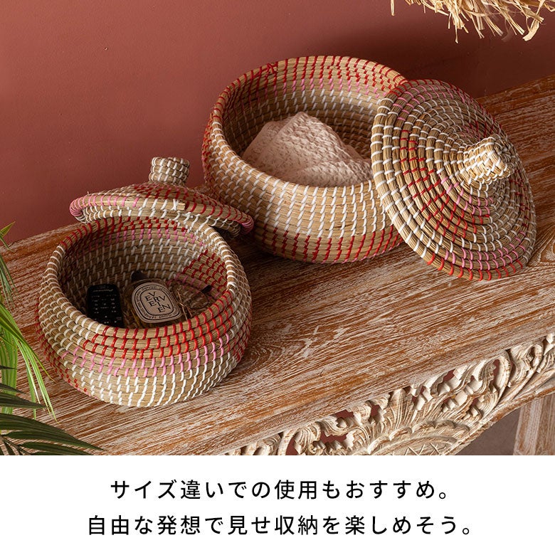 カゴ かご ゴミ箱 ごみ箱 フタ ふた 蓋 つき 付き 高さ 20cm 店舗 カフェ レストラン おもちゃ入れ アフリカン アフリカ ベルベルバスケット セネガルバスケット アフリカンバスケット バスケット ふた付き かごバスケット ポット シーグラス 約 W 32cm D 32cm H 20cm ナチュラル ピンク 収納 セネガルバスケット 蓋付き シーグラスバスケット 収納バスケット ダストボックス 荷物入れ 荷物かご おしゃれ 北欧 リゾート 雑貨 インテリア アジアン [51352]