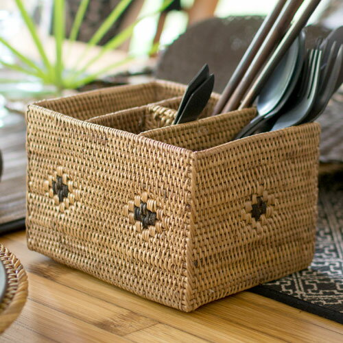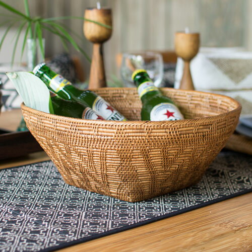 バリ島に自生する、アタとよばれるツタを編んで作られたバスケット。ドリンクやフルーツを置いテ、ダイニングを華やかに。