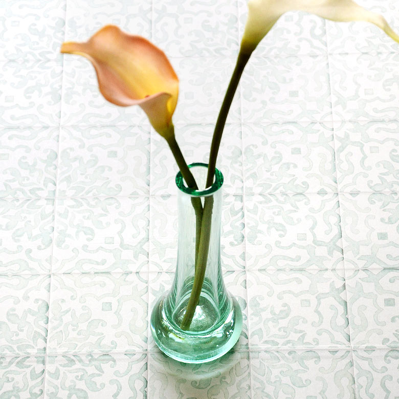 すっと伸びた細い口に、ぽってりしたボトムのフォルムが可愛らしいフラワーベース。