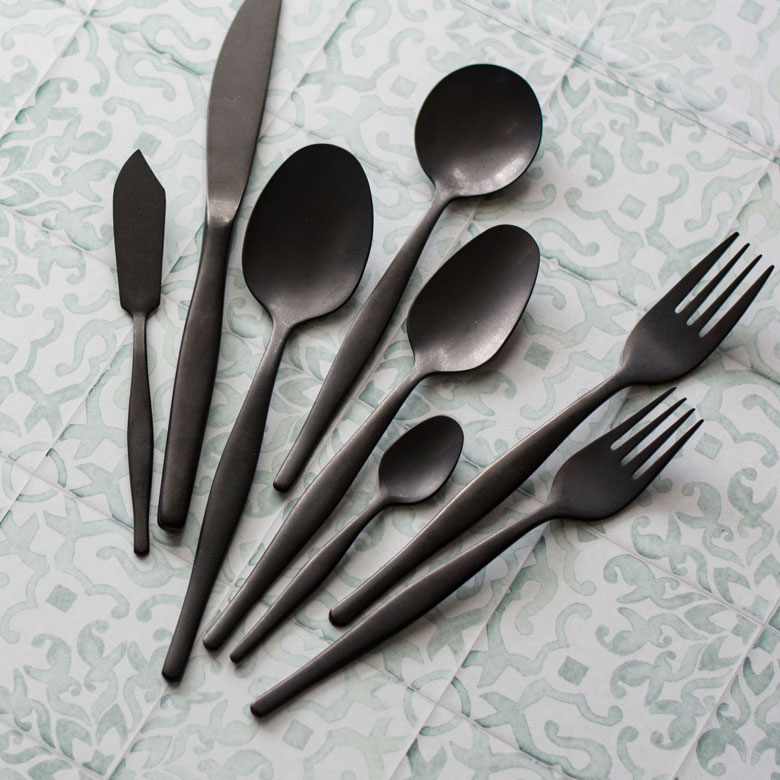 つやを抑えたブラックなのでシックな雰囲気。特別感のあるダイニングに魅せてくれるカトラリーシリーズ。