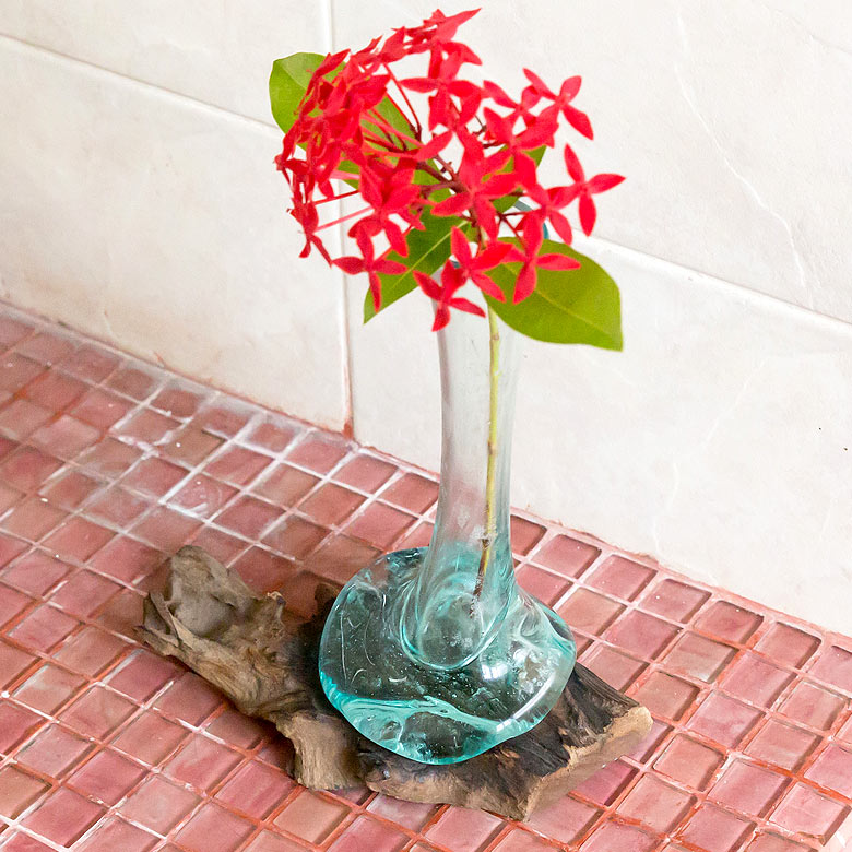 ひとつひとつ丁寧に型取りして作られた、一点物のフラワーベース。 海のような鮮やかなブルーグリーンと、自然味あふれるウッドが見事にマッチ。