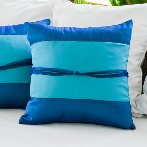 海のリゾートを思わせるオーシャンブルー。 グラデーションが美しい日本の藍染、絞り染めパターンを イメージしてプリント表現したピロークッションカバー。