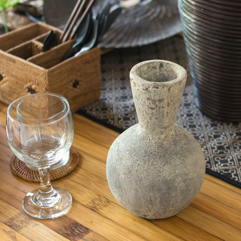 経年を感じさせるアンティーク調でありながら、シンプルデザインでモダンな佇まいが素敵なフラワーベース。
