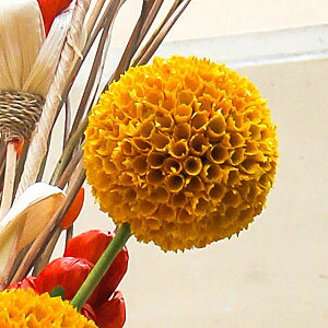 コロンとかわいらしいフォルムの造花。針金でできた細長い枝に丸いボールの花を組み合わせて作られたアートプランツ。