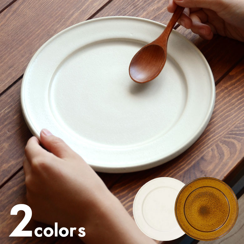 平たく、ケーキやパンなどをのせるのに使いやすいお皿。 釉薬の色ムラによって、なんとも味わい深い質感です。