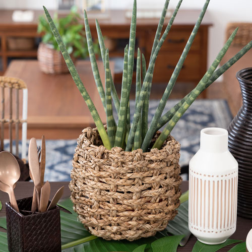 手びねりで陶器を作るようにラタン(籐)をぐるぐるとコイル状にして重ねて作られたフラワーベース。