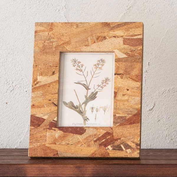 もともとは建築用資材であるOSB合板を使用したフォトフレーム。 木片を無造作に重ね合わせた風合いが魅力で、素朴ながら幅広いインテリアテイストにマッチします