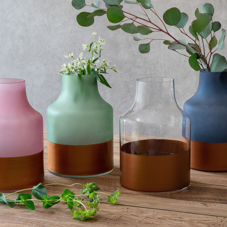 こちらの「ボトルタイプ」は花を入れた時の茎の安定感もあり、花の部分が360度広がってどこから見ても花が美しく生けられます。