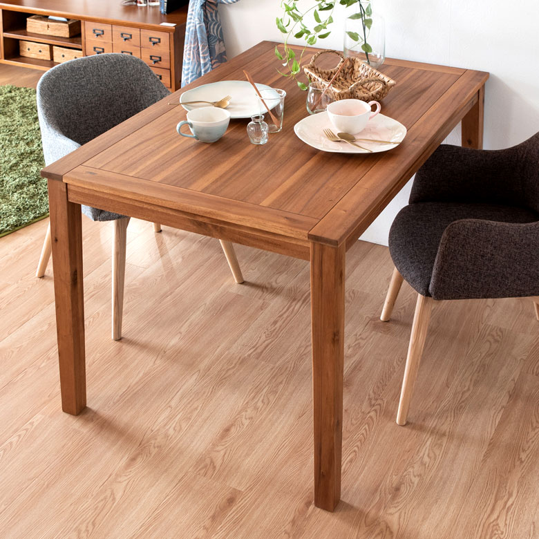 幅120cmはゆったりと2人で、お子様や女性ならコンパクトに4人でお使い頂けるダイニングテーブル。