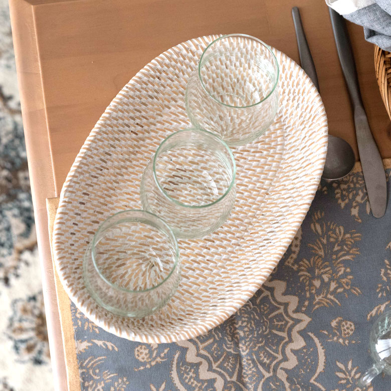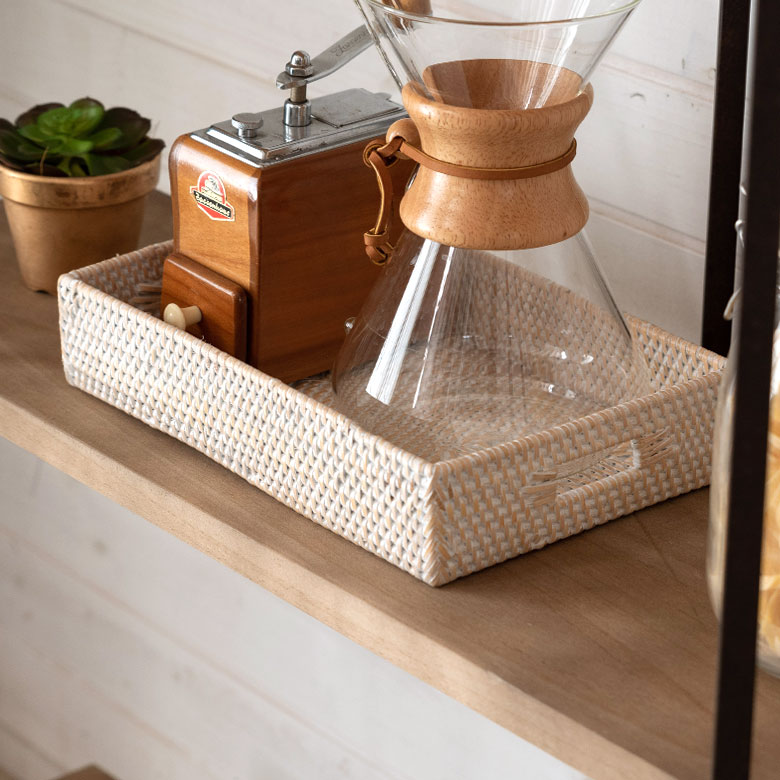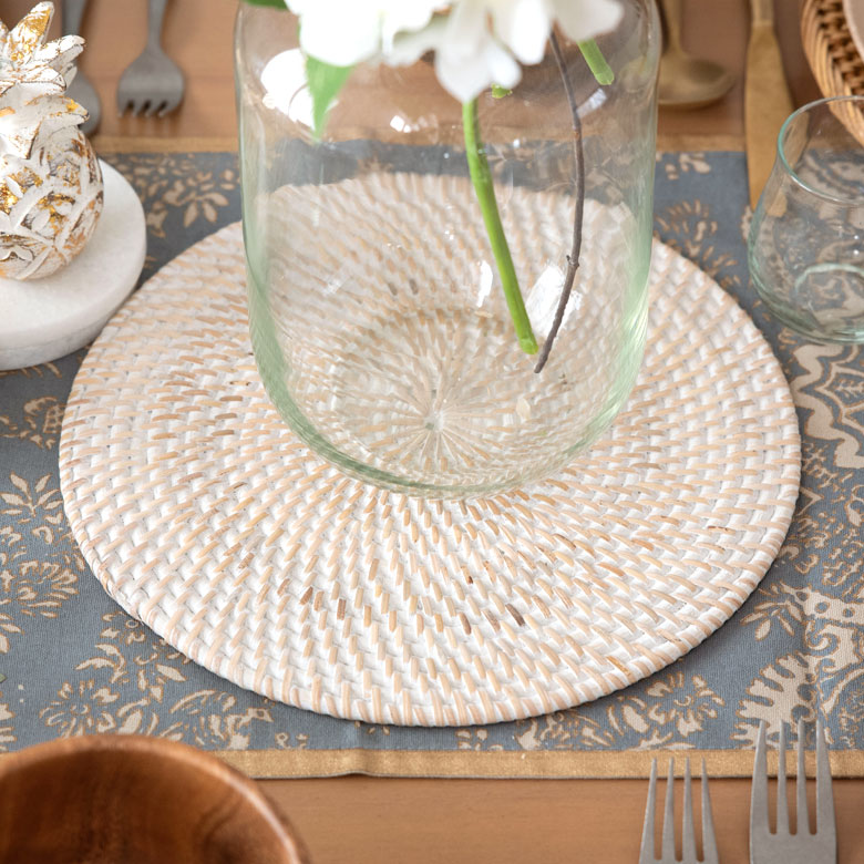 本来のラタンの編み目を活かしつつ、 ホワイトウォッシュ加工を施した、バリ島生まれのラタンシリーズ。