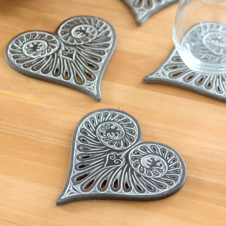 溝部分を白く染め抜き、バッファローホーン(水牛の角)に似せて 作られたデザインが特徴の、レリーフコースター。