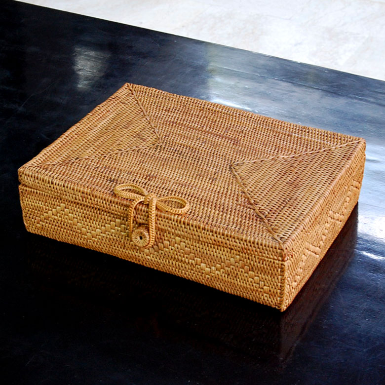 バリ島生まれのバスケットトレイ。 職人の手により、印象的な幾何学模様に編み上げました。