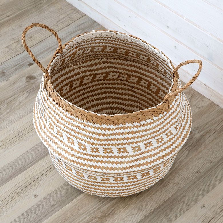 柔らかくしなやかな天然素材、シーグラスの大きめバスケット。 折りたたんでも使える、1つで2スタイル楽しめるアイテムです。