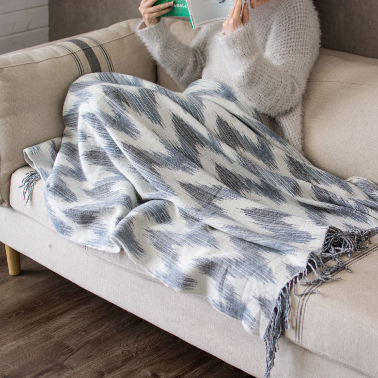 大きなギザギザが大胆なシェブロン柄を、ジャガード織りの薄掛けブランケットに。