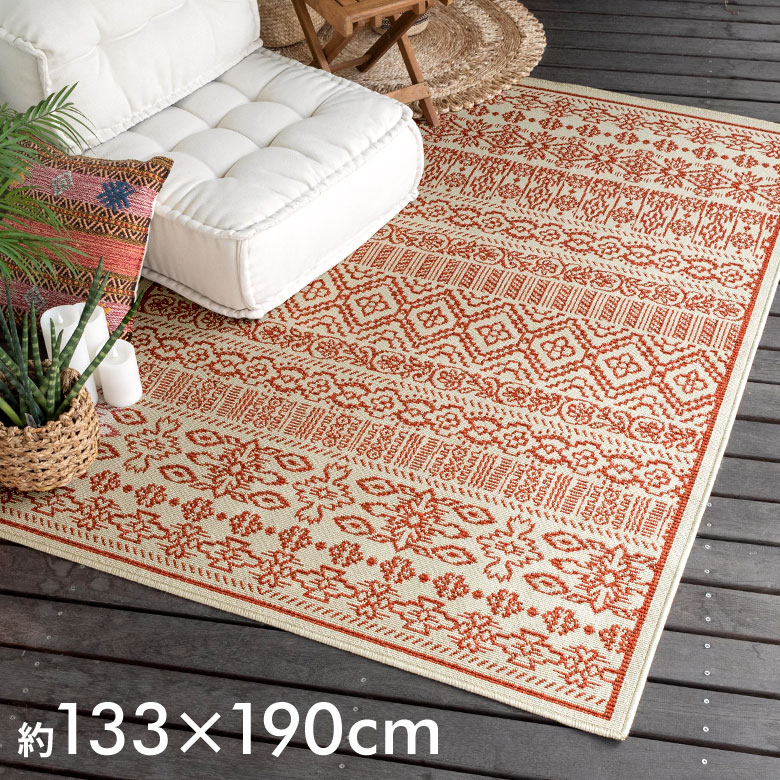 エスニックなスタイルやアジアンコーデにぴったり!室内、屋外のどちらでも使用できる、オリエンタル柄のデザインラグ。