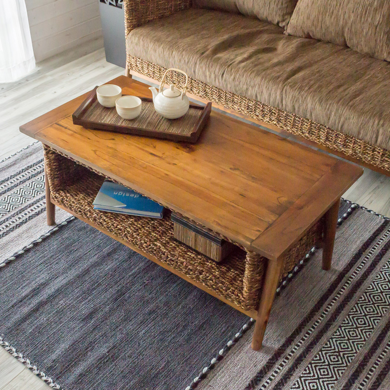 天然素材「アバカ」を使った、インドネシア製テーブル。 バリのホテルにありそうな、リゾート感たっぷりな家具です。