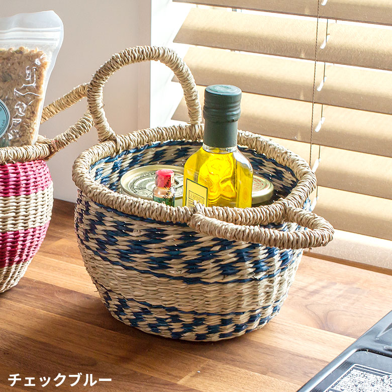 6種類のデザインから選べる、コロンと丸いフォルムのバスケット。