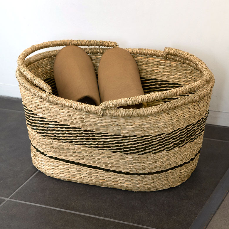 シーグラス(天然水草)を使い、1点ずつ丁寧に手作業で編み上げたバスケット。
