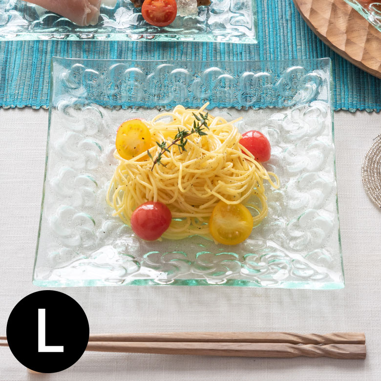 美しいプルメリア模様をあしらった、透明感たっぷりのガラスプレートで