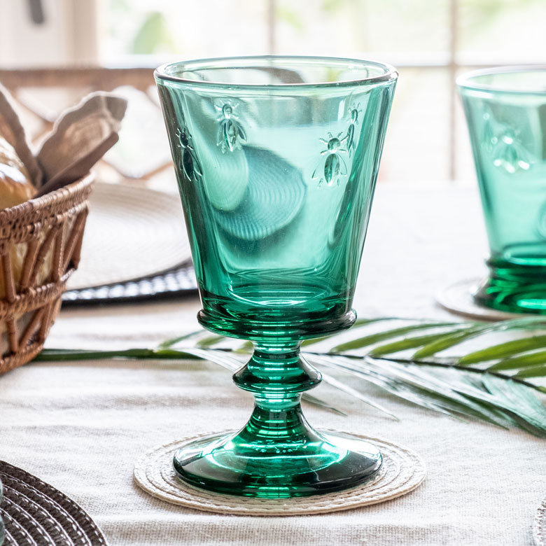 瑞々しく爽やかなグリーンが美しい脚付きグラス。