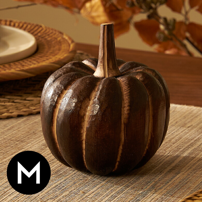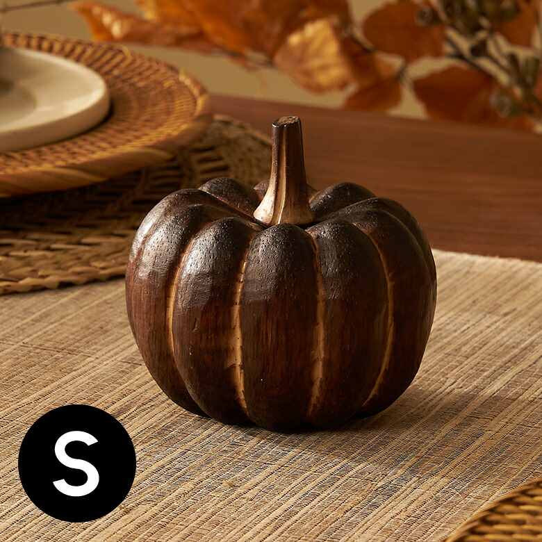 手のひらサイズが可愛らしい、木製のかぼちゃのオブジェ。