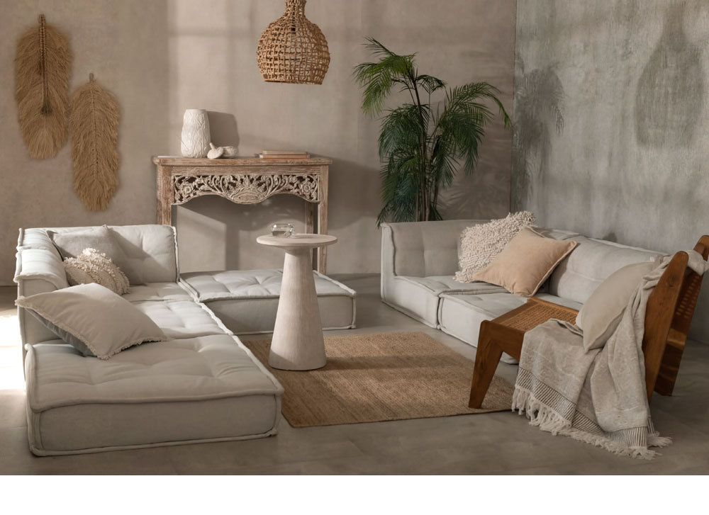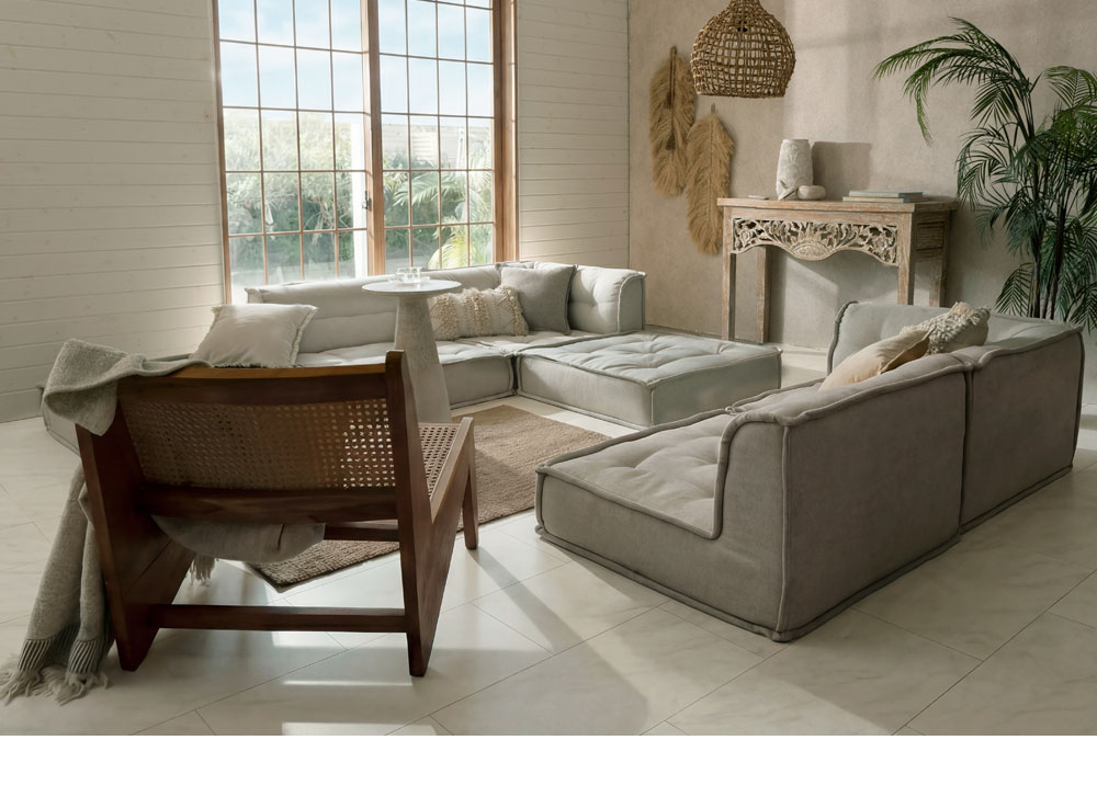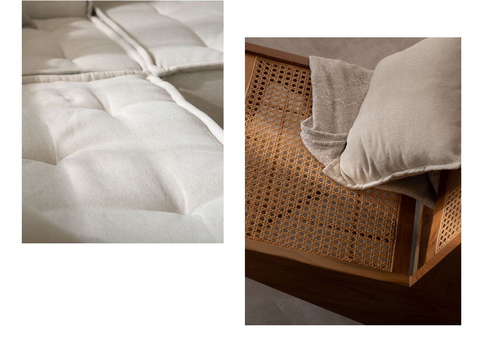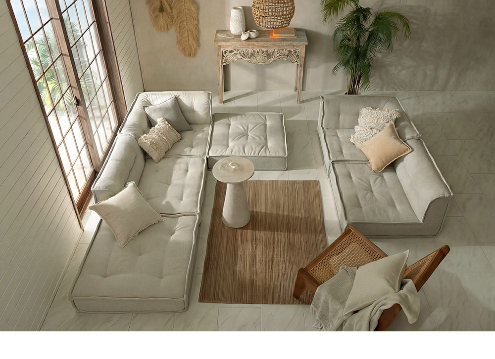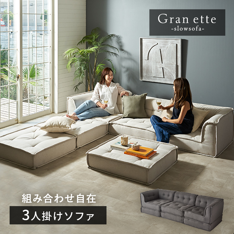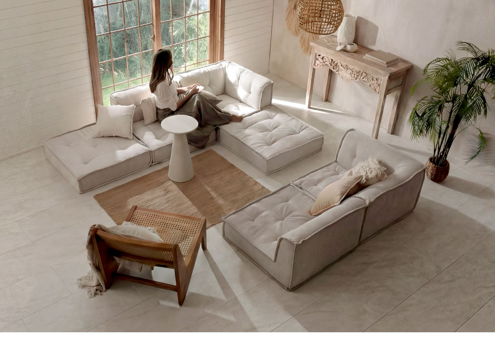 広めの座面と6層構造で極上の座り心地。組み合わせ次第でカウチにもソファベッドにも。