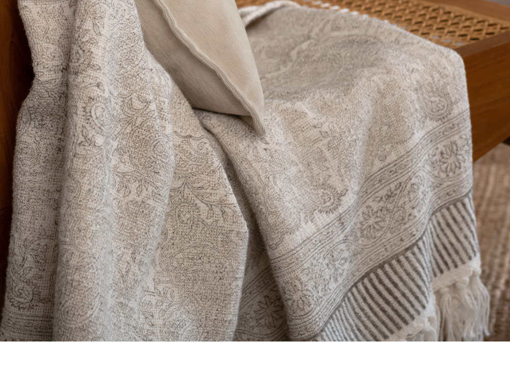 インドの伝統技法、ブロックプリントで作り上げたスローケット。