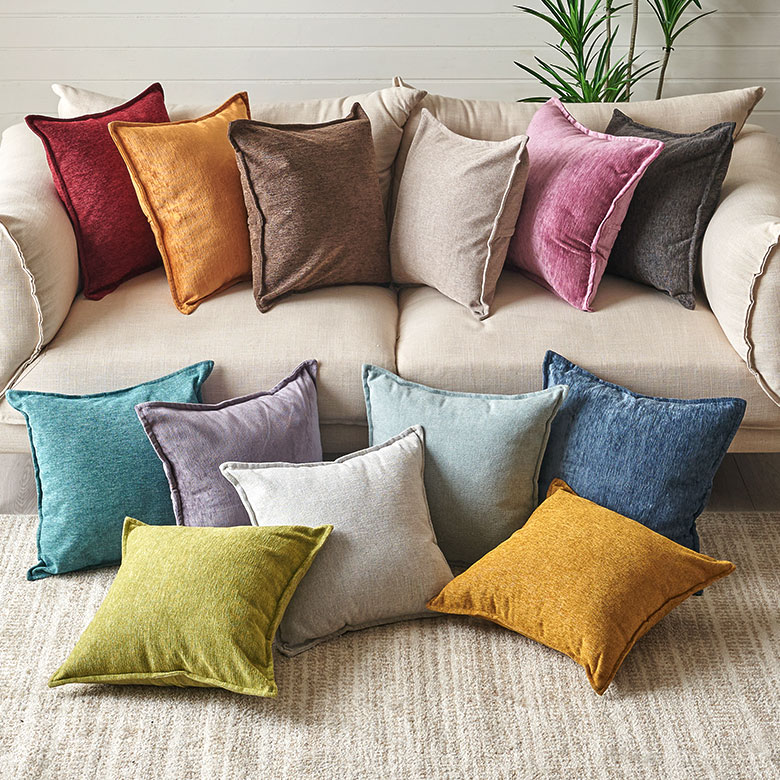 シンプルながらも洗練された魅力が漂う、ベロア調のクッションカバー。 気分やお部屋の雰囲気に合わせて選べる豊富なカラー展開。