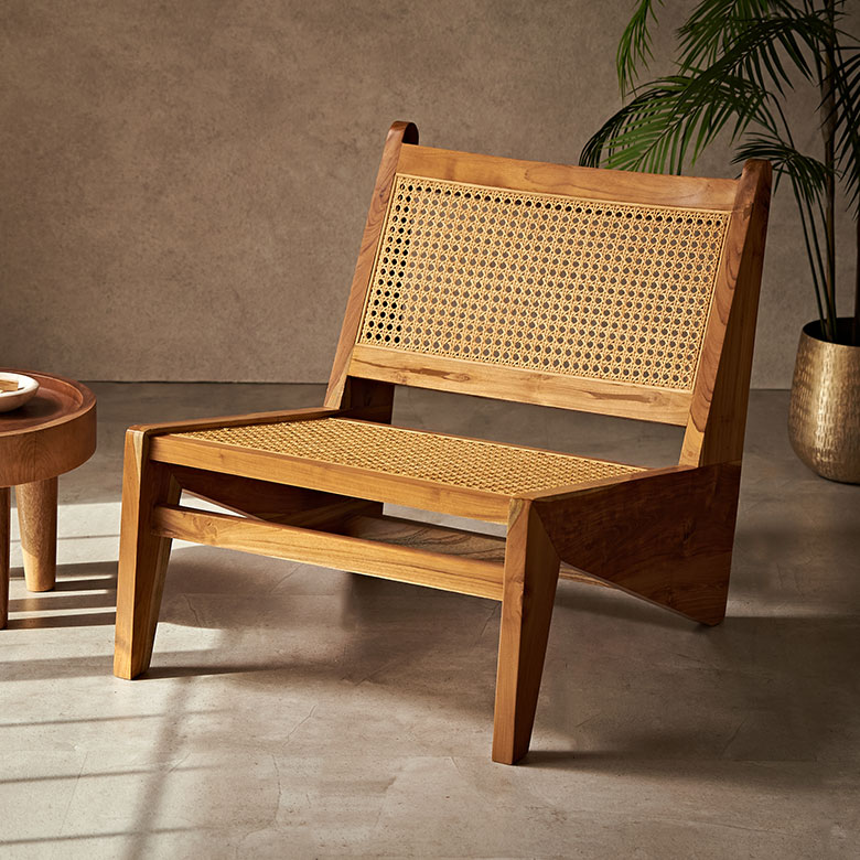 ラタン家具の軽やかな佇まいが、
