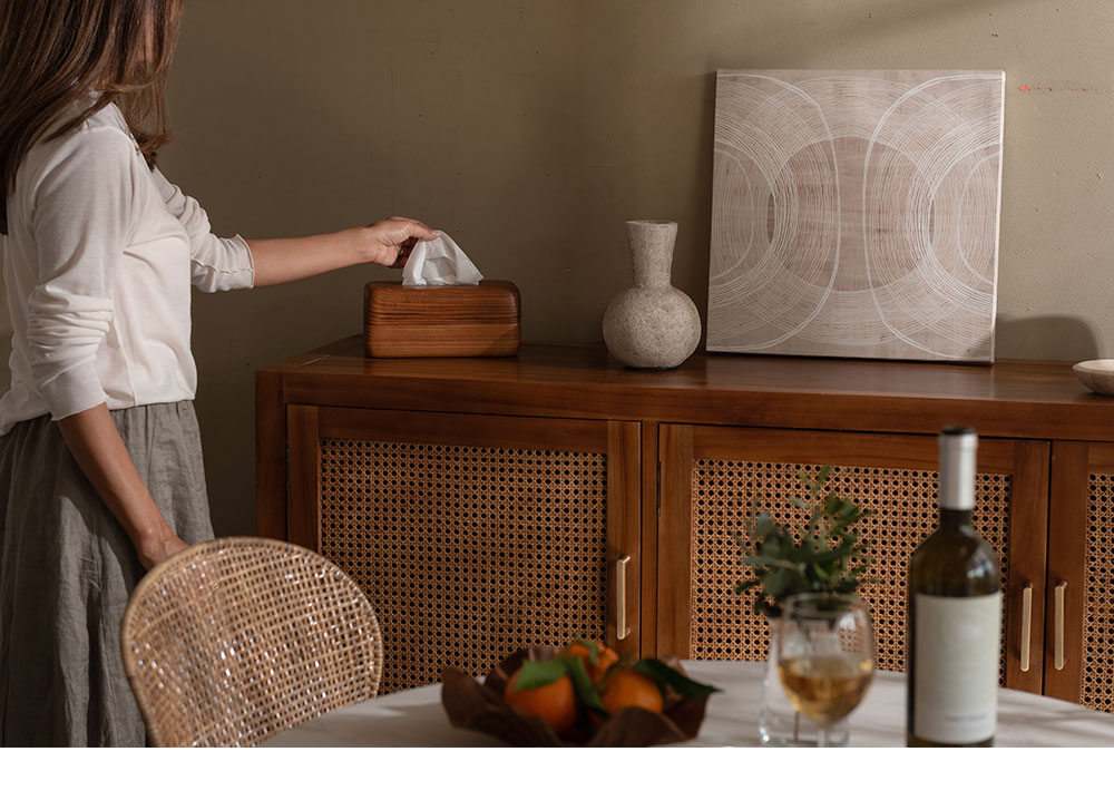 柔らかな曲線とぬくもりを感じられる木目が印象的なティッシュケース。
