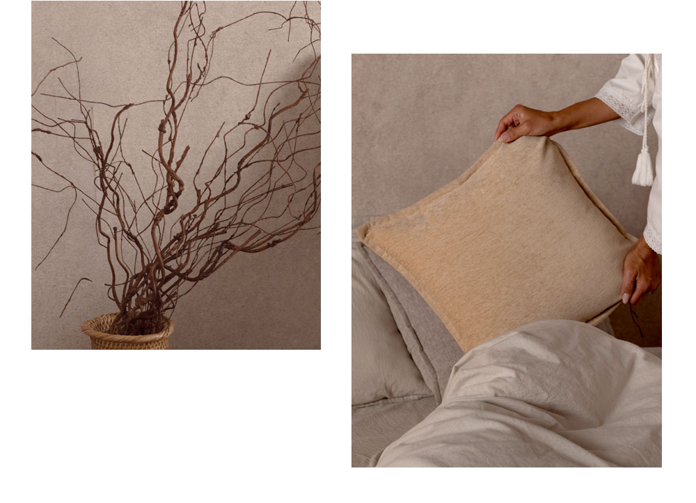 ジュートの自然な風合いや、ラタン家具の穏やかな佇まいが