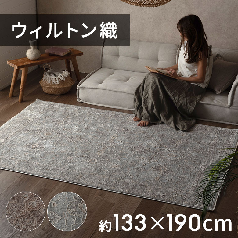 ニュアンスカラーが上品な印象のオリエンタル柄デザインラグ。